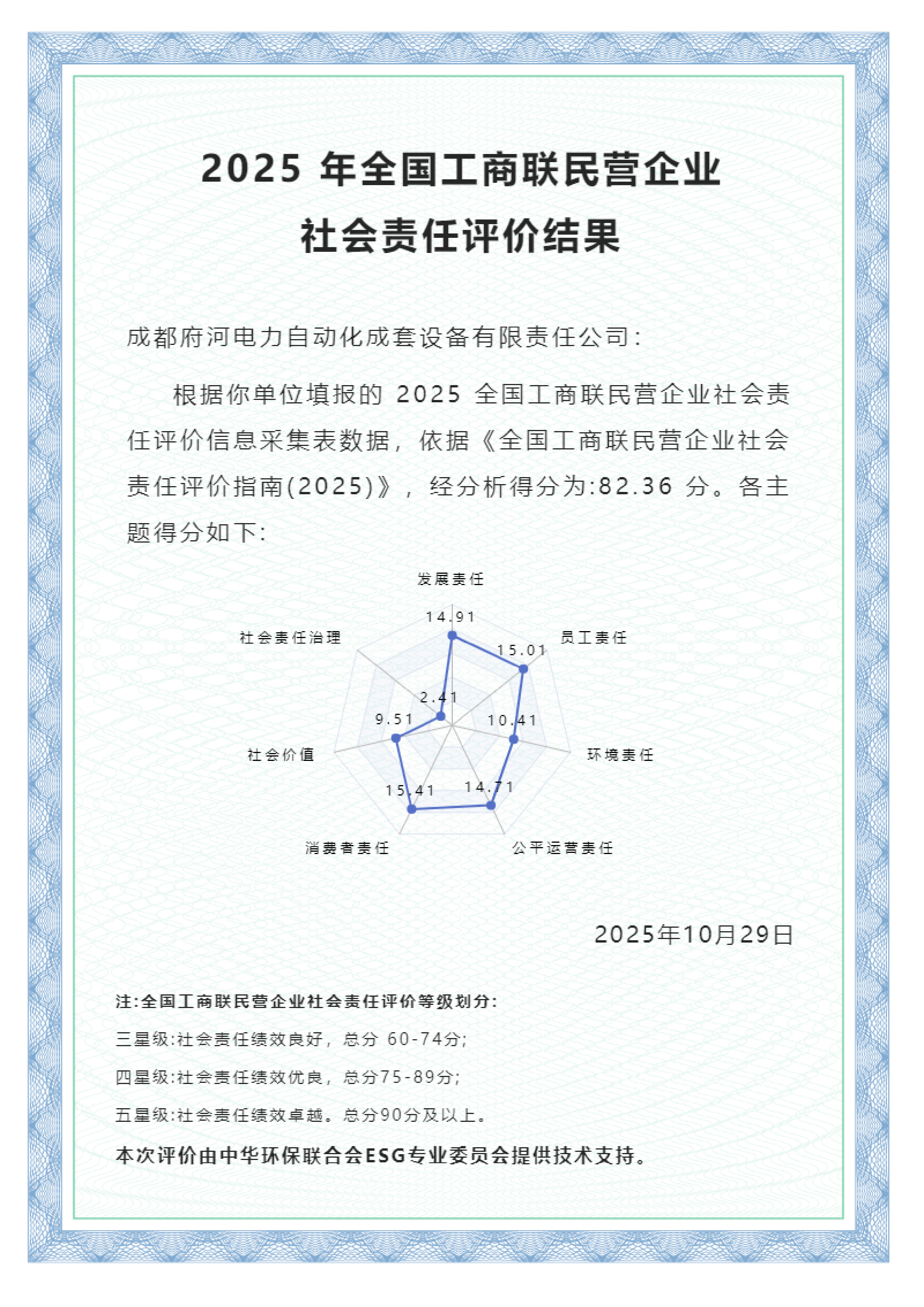 成都府河电力荣膺“2025 年全国工商联民营企业社会责任四星级评定”